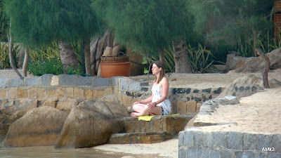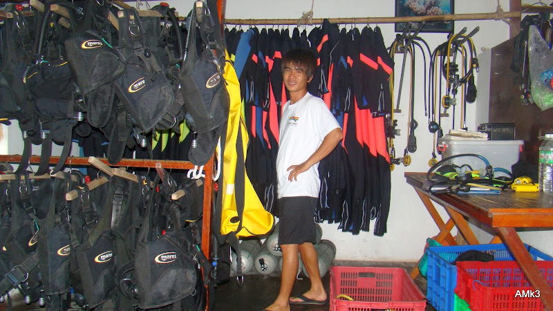 Trang thiết bị đã mang đầy đủ. Ra sát bậc xuất phát, xỏ fins, đeo kính (nhớ đeo thật trễ), ngậm mồm thở.