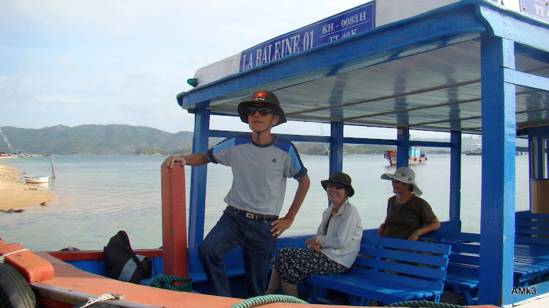 Kéo kính lặn xuống cổ (không kéo lên trán). Tháo fins chuyển lên tàu. Tháo đai chì (cầm đầu không có khóa) chuyển lên tàu. Leo lên.