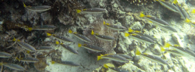 Hôm sau chúng tôi khám phá rạn san hô ở bãi biển Resort, sâu từ 15 đến 65 feet. Điều đầu tiên gây bắt mắt là một vùng squirrelfish màu đỏ tươi, rất sống động trong ánh sáng buổi sáng. Rạn san hô trải dài hàng trăm mét, chủ yếu là san hô cứng, với các loại cá náu mình trong các ngóc ngách. Có tunicates đầy màu sắc. Con cua màu cam cư trú dưới cánh tay của con sao biển. Một sinh vật rất ăn ảnh là con tôm tím bám vào một crinoid màu đỏ rực rỡ.